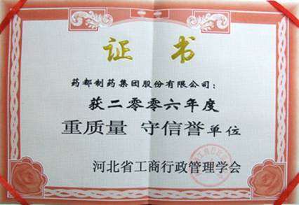2006年2月,被河北工商行政管理協(xié)會(huì)授予“重質(zhì)量 守信譽(yù)”單位。