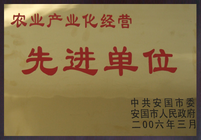 2006年3月,我公司被評(píng)為農(nóng)業(yè)產(chǎn)業(yè)化先進(jìn)單位。