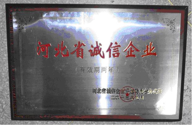 2013年9月27日,河北省誠(chéng)信企業(yè)評(píng)選委員會(huì)在省會(huì)石家莊召開了2013年度誠(chéng)信企業(yè)表彰大會(huì),對(duì)榮獲2013年河北省誠(chéng)信企業(yè)進(jìn)行了表彰 (冀誠(chéng)企評(píng)辦[2013]16號(hào)),我公司連續(xù)被評(píng)為“河北省誠(chéng)信企業(yè)”。